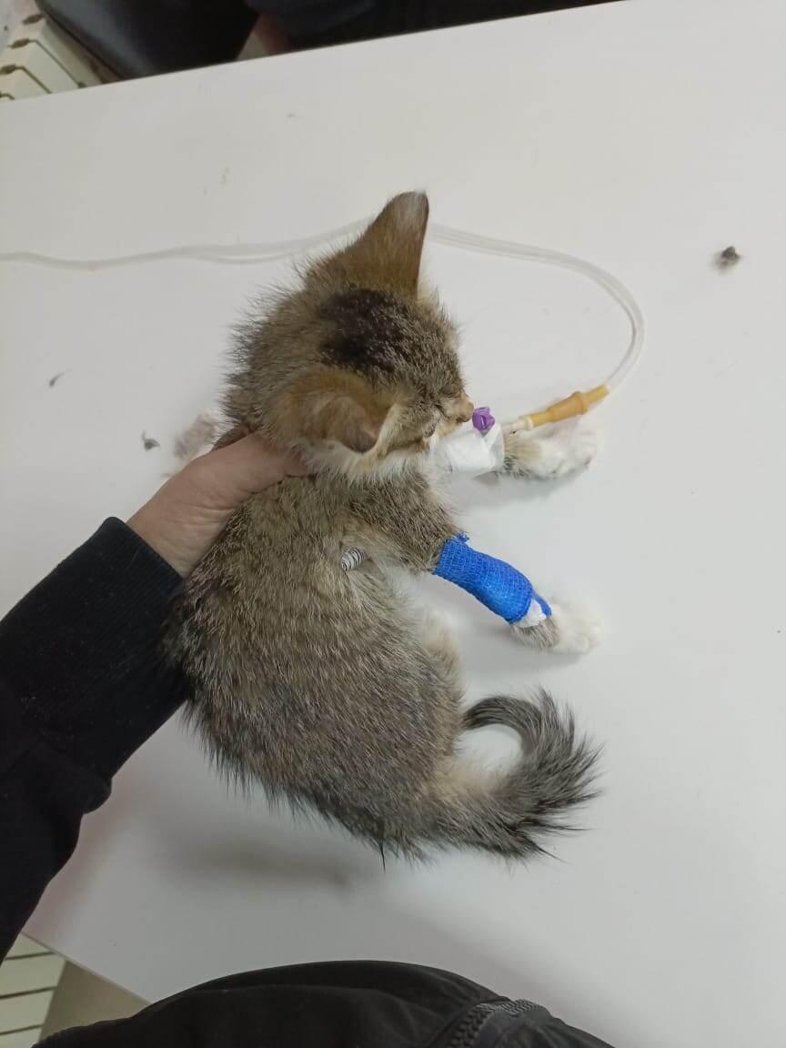 Возили Тигрулю в клинику. Сама я не смогла поехать, отправляла сестру. Котенок в клинике после капельницы активничал, пытался съесть Галю. Кровь взять не смогли, не идёт. Прокапались, завтра снова на капельницы. Внешне котёнок здоров, ест. Наблюдаем. Выполняем назначения. Лекарства купили. Может завтра смогут взять анализы. Сегодня финансово справились сами.