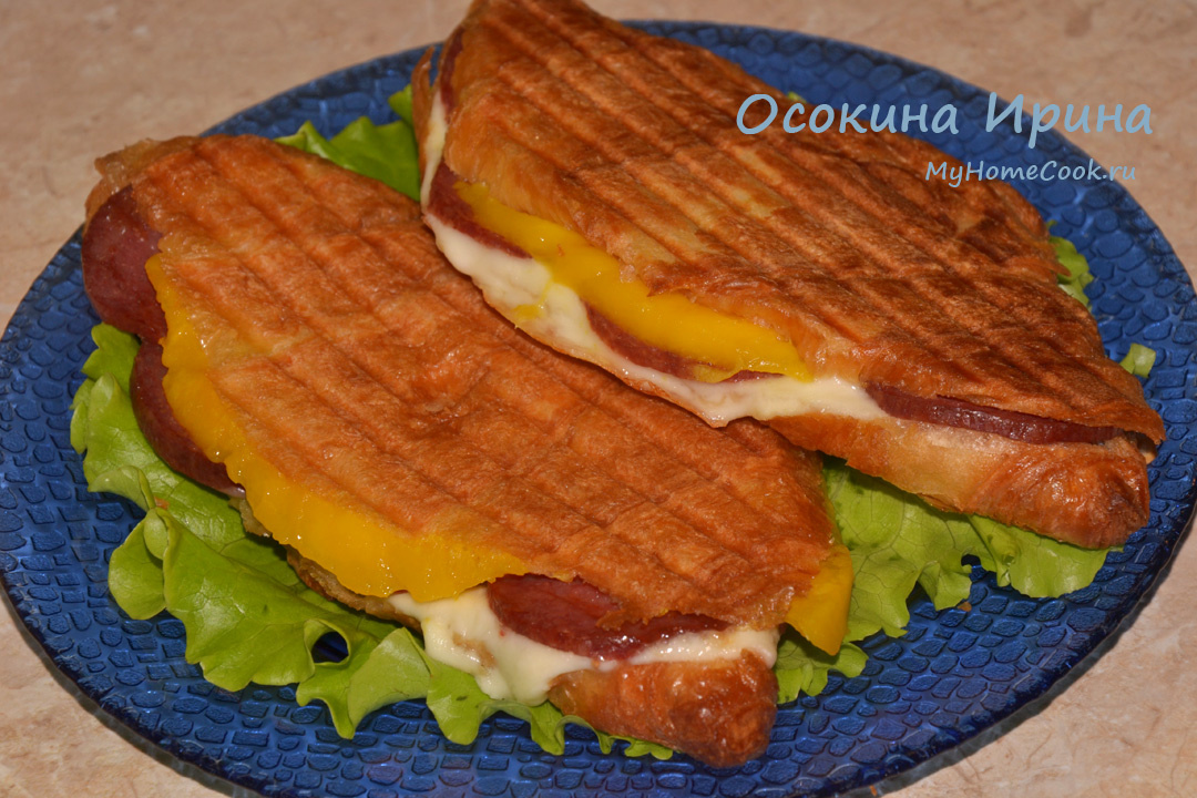 Сегодня решила поиграть с сочетанием продуктов из разных кухонь мира, получилось вот что: круассаны разрезала плашмя пополам, на нижние части уложила по пластику сыру, поверх - тонкие ломтики сырокопчёной колбаски, накрыла пластиками спелого манго, накрыла всё верхними частями круассанов и готовила каждый круассан в мультипекаре с панелями для гриля по 1 минутке. Получилось просто идеальное сочетание вкусов и фактур! Сладко-солёно-сливочная прелесть) Приятного аппетита