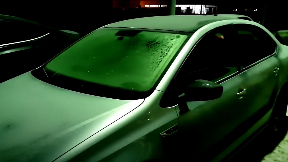 Постояли так 3 минуты, теплый воздух вышел из машины, и температура сравнялась. Теперь она одинаковая, что внутри, что снаружи. Конденсат выпадать не будет, замерзаний также не будет.