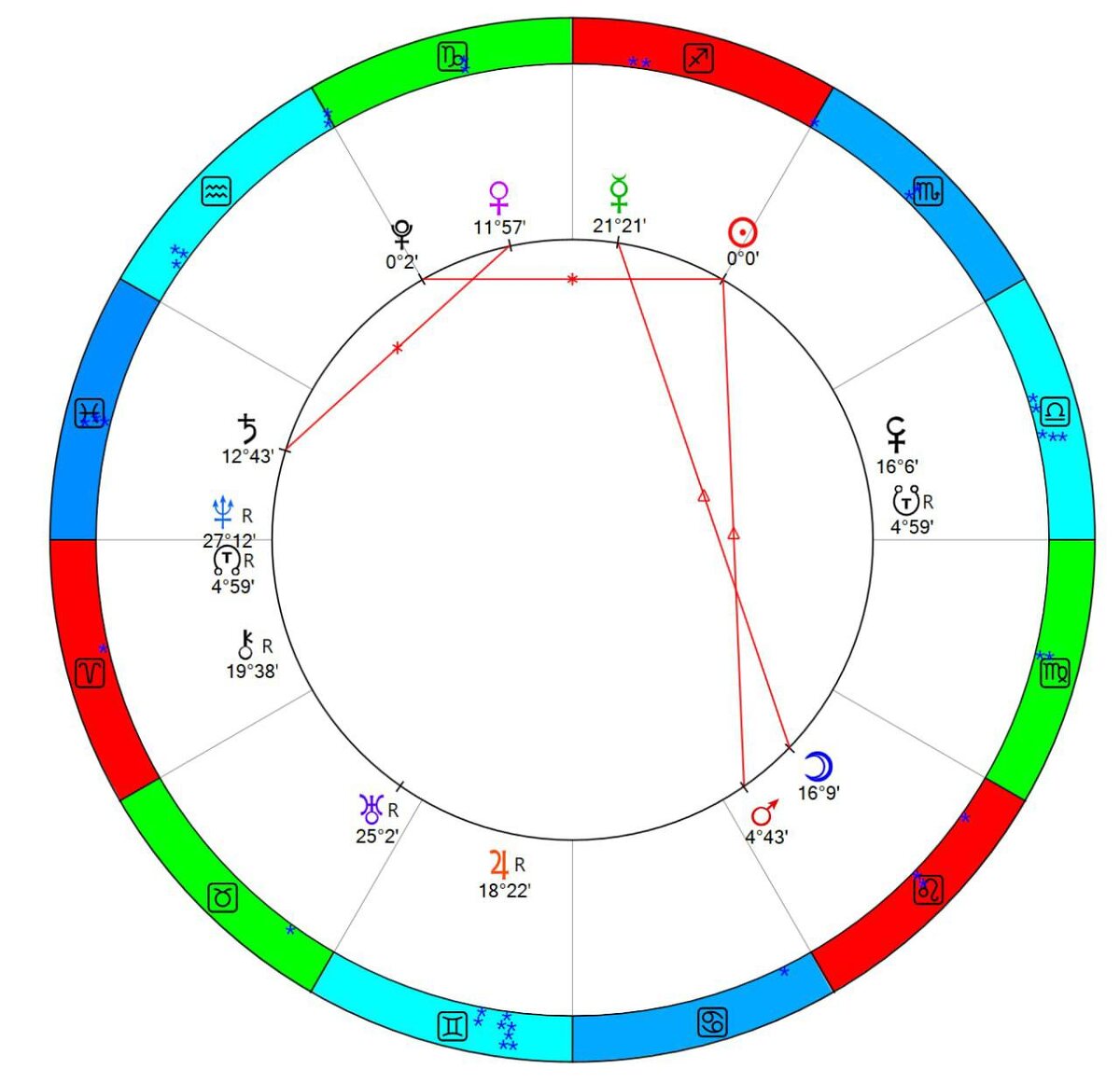 Солнце трин Луна: интуиция, Ян = Инь. Взаимодействие с противоположным полом благоприятно, решение семейных вопросов даёт хороший результат.