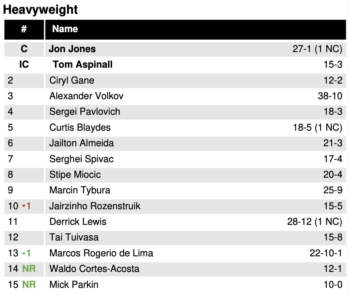 Актуальные рейтинги ufc ( изменения 05.11.2024)