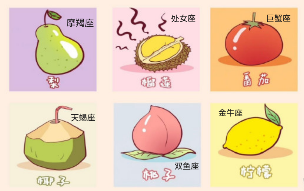 Давайте посмотрим, что получилось: 1. Козерогов (摩羯座 mójiézuò) сравнили с грушами (梨子 lízi) 2. Дев (处女座 chǔnǚzuò) сравнили с.... дурианом 😶🌫️ (榴梿 liúlián) 3. Раки (巨蟹座 jùxièzuò) - это вылитые томаты! (番茄 fānqié) 4. Скорпионы (天蝎座 tiānxiēzuò) - это кокосы (椰子 yēzi) 5. Рыб (双鱼座 shuāngyúzuò) в этом тренде увидели в качестве персиков (桃子 táozi) 6. Тельцы (金牛座 jīnniúzuò) - это лимоны (柠檬 níngméng) Нашли свой знак? Тогда пишите какой вы фрукт на китайском! Если нет, то во второй части обязательно найдете!