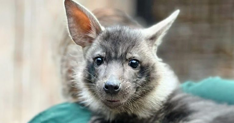 Московский зоопарк наконец-то показал недавно родившегося детеныша редкой бурой гиены