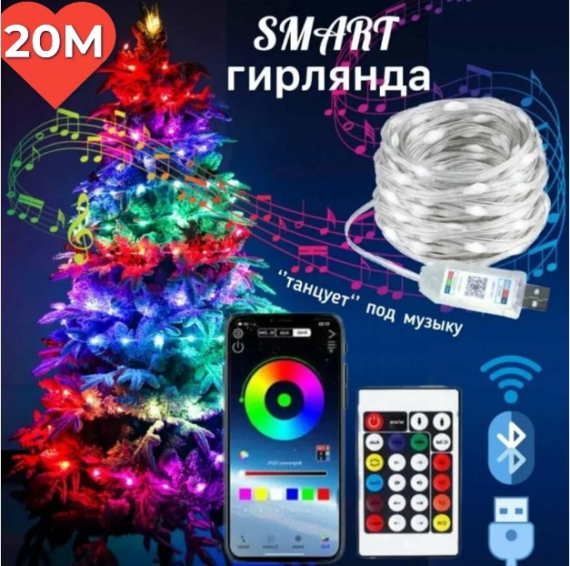 «Сделайте свой дом волшебным с умной гирляндой 20 м: 16 миллионов оттенков, дистанционное управление и уникальные световые эффекты»