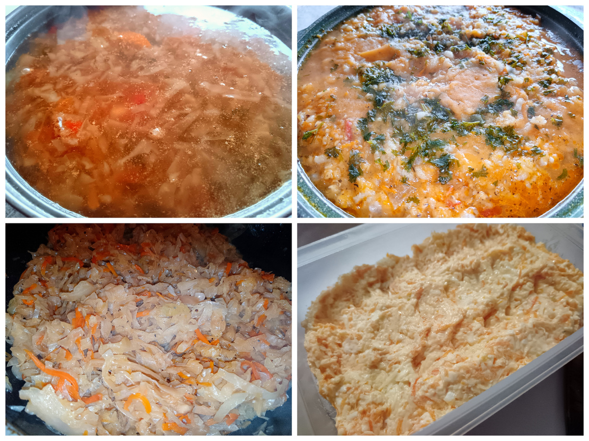 Здравствуйте, дорогие мои! Сегодня отчитываюсь что я в рамках нашей программы "Живем на запасах" приготовила. Еда у нас самая простая, честно говоря, до выходных вообще решили слегка разгрузочные дни устроить, даже когда на капусту смотрела и вслух размышляла чтобы из неё кроме щей приготовить, хозяин наш сразу сказал - только не пирожки. Ну это он про жареные. 😀 А я и не собиралась, да и печеные тоже не хочу. Время от времени вспоминаю, что ни разу не готовила пирожки паровые (пигоди, кажется, называются), вот если очень захочется пирожнов, то попробую их освоить. Но маловероятно, да и лишнюю капусту я уже пристроила. Давно не готовила чечевицу и совсем забыла, как сильно она разваривается. В итоге ну очень густой суп получился)). Почему у меня два "первых" в один день получилось - забыла заранее набор на суп достать. Так то ничего страшного, но варился бульон дольше обычного. Думала не успею к обеду щи приготовить, так хоть на скорую руку суп из чечевицы сварю, маленькую кастрюльк