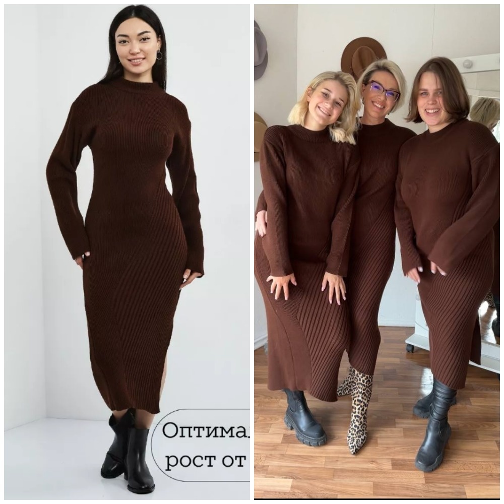 Здравствуйте, дорогие читатели! Меня зовут Ирина, я - стилист, и на этом канале показываю одежду и аксессуары с Wildberries такими, как они есть, то есть, из серии "ожидание/реальность". Мои параметры: рост 169 см, вес 67 кг, 94-74-100 ✅Основной канал: Стильно - не значит дорого! Ставьте лайк в поддержку канала, и давайте смотреть на мою сегодняшнюю покупку. Трикотажные вязаные платья-свитеры и платья-джемперы лично для меня - мастхэв каждого осенне-зимнего сезона. Носим, независимо от возраста и размера (что мы показали на фото и видео ниже), можно даже беременным, по-разному стилизуем, дополняя стильными деталями, и получаем модные и комфортные образы! Конкретно это платье нам так понравилось, что купили его аж в количестве трех штук, благо, размеры 42-56. Модель представлена в разных цветах, но нам больше всего понравился теплый шоколадный. Платье уютное, достаточно теплое (но без подкладки), не вытягивается и не образует катышков после стирки. Свободное прилегание, мягкая ткань. Вм
