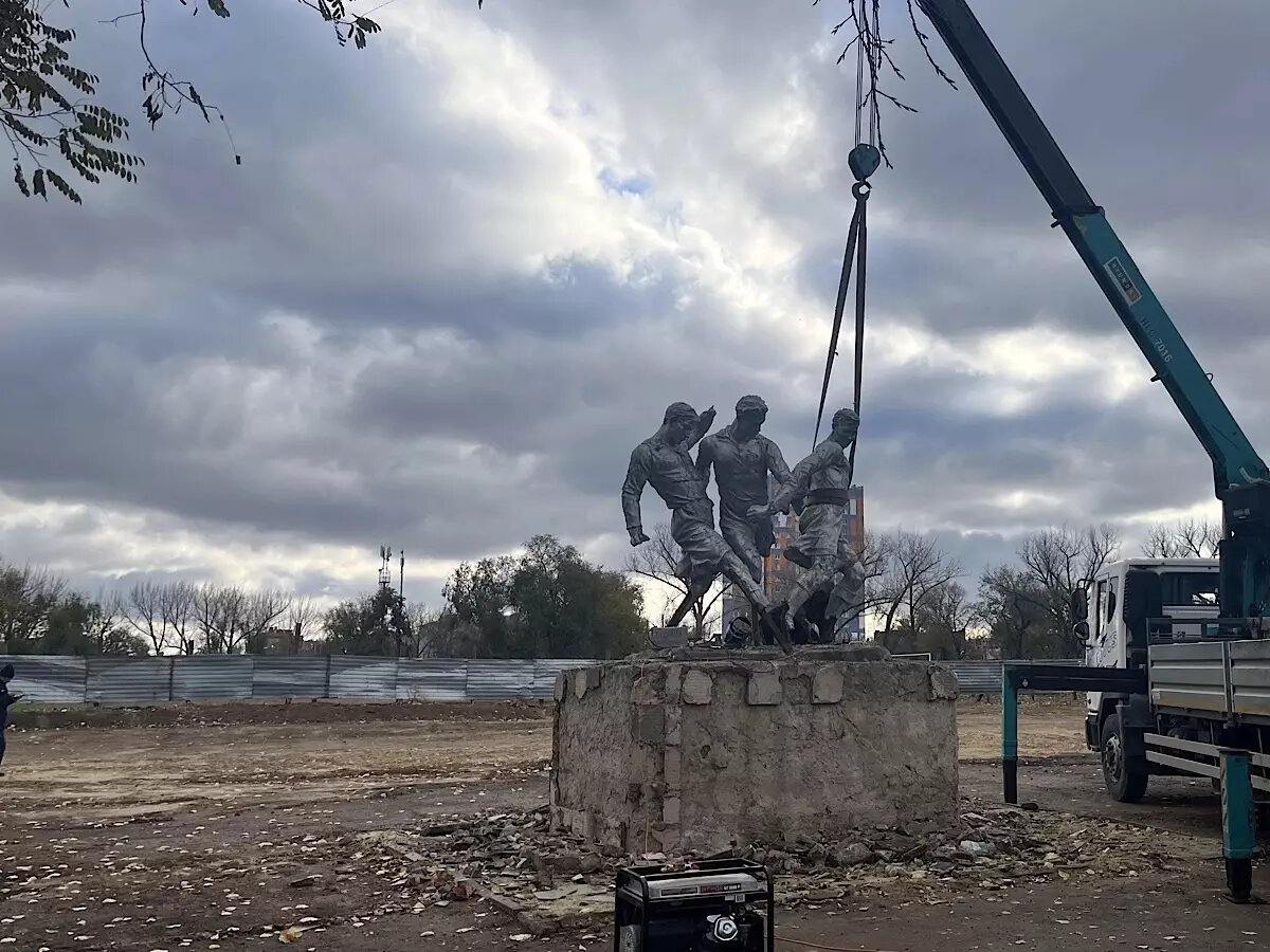 Началась реставрация статуи стадиона «Прогресс» в Каменск-Шахтинском. Утром 5 ноября специалисты отвезли памятник «Футболистов» в мастерскую к известному донскому скульптору Александру Ализаде.
