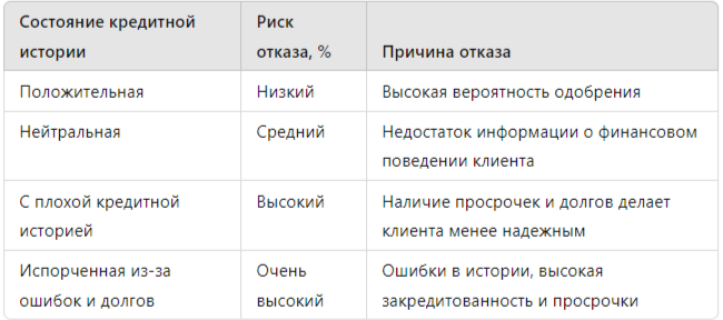 Многие клиенты сталкиваются с отказом при подаче заявки на кредит, и даже банк Тинькофф, известный своей лояльностью к клиентам, также иногда отказывает в кредитовании. Рассмотрим, почему это происходит, какие факторы влияют на решение банка, а также как можно улучшить кредитную историю для повышения шансов на одобрение. Кредитная история — один из ключевых факторов, на который смотрит банк при принятии решения. Она показывает, насколько дисциплинированно клиент выполнял обязательства по прошлым кредитам. Таблица 1. Влияние состояния кредитной истории на решение банка Тинькофф Высокий уровень долговой нагрузки — одна из причин отказа. Банк оценивает, сколько клиент уже тратит на погашение других кредитов, и, если сумма значительна, может отказать в новом кредите. Нередко встречаются случаи, когда отказ в кредите вызван ошибками в кредитной истории, такими как: Пример ошибки в кредитной истории