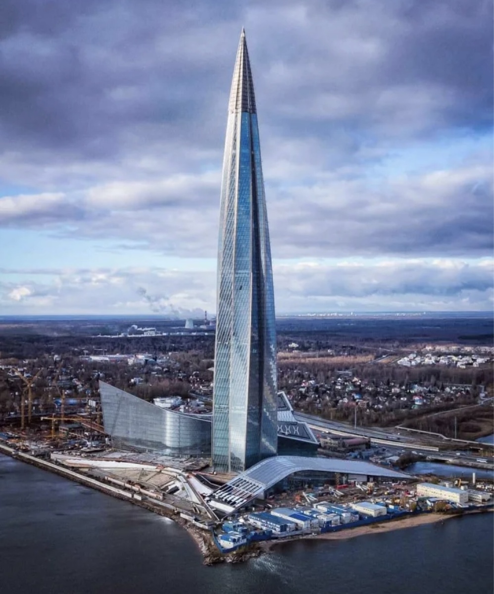 1. Лахта-центр (462 м), Санкт-Петербург. Это общественно-деловой комплекс, который строится в Приморском районе Санкт-Петербурга, на побережье Финского залива. В центре комплекса находится штаб-квартира группы «Газпром» и компании «Газпром нефть». Другую часть площади занимают общественные пространства: научно-образовательный комплекс для детей и молодёжи, планетарий, выставочные пространства, медицинский и спортивный центры, многофункциональный зал-трансформер и другие. Комплекс состоит из четырёх сооружений: многофункционального здания с атриумом, стилобата (там разместится паркинг и вспомогательные помещения), арки главного входа и небоскрёба высотой 462 метра. 2. Федерация (373,7 м), Москва. Комплекс небоскрёбов, расположенный в Московском международном деловом центре «Москва-Сити». Комплекс состоит из двух разновысотных башен, возведённых на одном стилобате: В комплексе размещены офисы и апартаменты. Стилобат — 6-этажный атриум — занимают офисы и торговая галерея. Общая пло