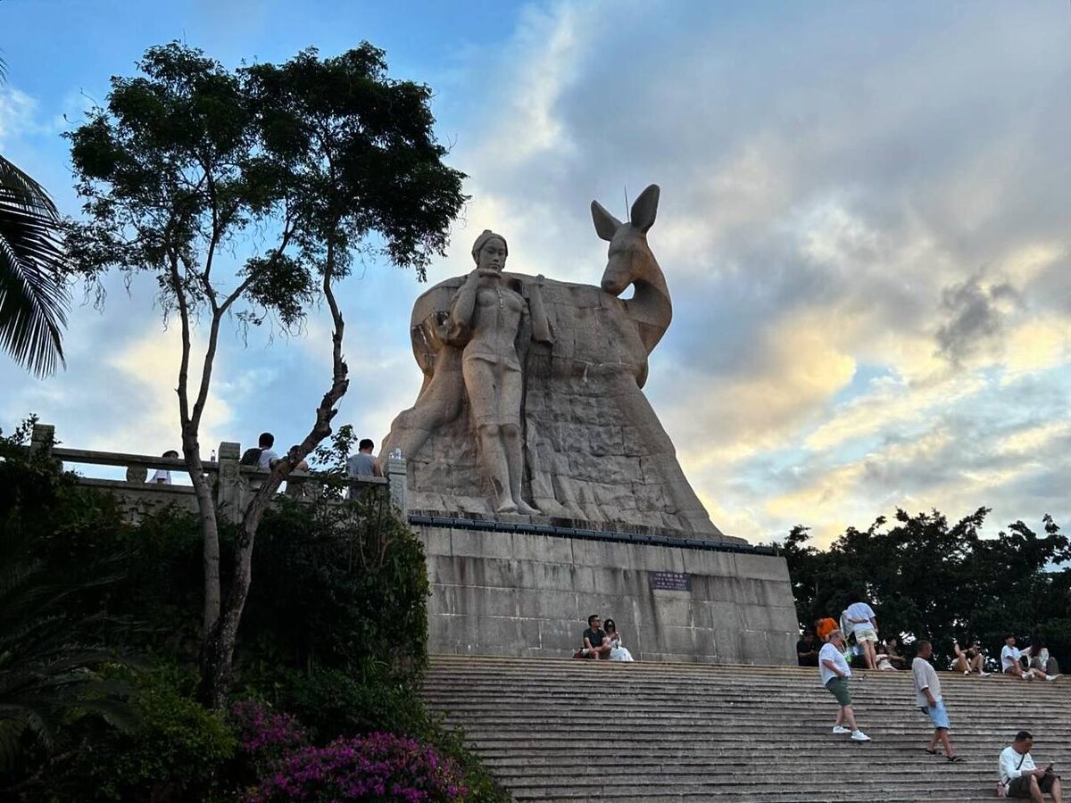 Олень повернул голову — это парк такой чудесный на Хайнане. Почему олень, почему повернул и почему ему посвятили большой парк на сопке? Есть несколько версий, но самая романтичная такая: один богатый китаец, имени которого я не помню, решил удивить и порадовать второго богатого китайца из числа чиновников, имени которого я не помню то же. Ну есть проблема с запоминанием китайских имен, поэтому без них обойдемся. Так вот, он отправил своего слугу в лес. Говорит: рога оленя нужны, добудь. Тот пошел, в лесу заприметил оленя, уже собрался было выстрелить, и тут олень повернул голову, посмотрел на паренька своими красивыми и грустными оленьими глазами, и тот выстрелить не смог. Пришел он к тому богачу, а тот ему говорит: «так дело не пойдет, заточу мать твою в темницу, и пока рога не принесешь, не выпущу». Паренек снова пошел в лес, опять выследил того же самого оленя, снова прицелился и видит, крадется к оленю леопард. Паренек взял и застрелил хищника (ну леопарда то не жалко), а олень убе