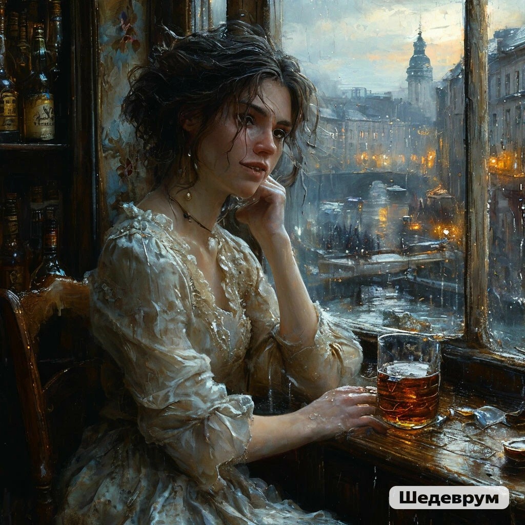 Она садится у окна.