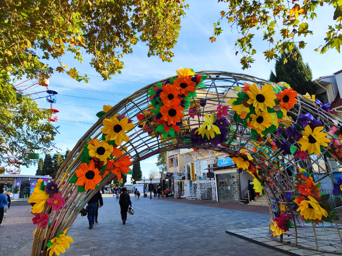 Раз уж мы были в Алуште, то обязательно решили зайти на набережную. Я там уже была на новой набережной некоторое время назад. Она шикарная! Очень рекомендую всем побывать в Алуште и погулять там. Единственная проблема там с парковкой, я это ощутила уже в ноябре. Было сложно припарковаться. Но оно того стоит. В этот день мы гуляли в парке миниатюр и после пошли обедать. Зашли в столовую на набережной под названием Вкусно.ru. Цены приемлемые, но дороже чем у нас в Черноморском, но было действительно вкусно. Фотографий не делала, так как особо и нечего было показать. Мне было главное накормить дочку, так как в парке миниатюр мы были довольно долго. Про парк читайте тут: На набережной довольно много народу, но не толпы. Погулять и посидеть, где было. Но с дочкой разве посидишь? Она взяла самокат, и мы помчались в сторону моря сразу. Мария закричала: мама, моне! Значит, надо с морем поздороваться.) Возле моря установлена надпись "Мы вместе". Символично, красиво! Люди сидят рядом на лавочк
