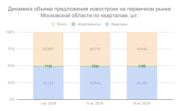 Третий квартал на рынке первичной недвижимости Подмосковья ознаменовался небывалым проседанием спроса: впервые с 2020 года он снизился на 41,8% – таковы последствия отмены льготных ипотечных программ. Стоимость жилья изменилась незначительно: средневзвешенная цена 1 кв. м в Московской области составляет 188 970 руб. По данным «Метриум», на рынке новостроек Московской области по итогам III квартала 2024 года в реализации находилось 217 проектов, где предлагалось 42,9 тыс. лотов, из которых 41,7 тыс. – квартиры и 1,2 тыс. – апартаменты. Объем предложения за квартал практически не изменился (-0,6%). В III квартале 2024 года было выведено на рынок семь новых проектов. В пяти проектах реализуются квартиры, в двух – апартаменты. Новые проекты на первичном рынке недвижимости Московской области во III квартале 2024 г. Источник: Метриум Максимальный объем предложения находится в Ленинском городском округе. В округе Домодедово за квартал средняя цена выросла на 11%, что обусловлено ростом цены в