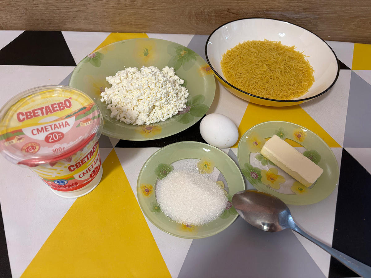 Этот рецепт очень похож на запеканку, возможно, его даже так и называет в простом обиходе. Что понадобится ( я делала небольшую порцию): Лапша (я взяла мелкую) - 100 грамм Творог - 100 грамм Яйцо - 1 шт Сахар - 2 столовые ложки Масло или маргарин - 25 грамм Сметана - 3-4 столовые ложки Лапшу заранее отварила в чуть подсоленной водичке и туда добавила творог (можно его измельчить , я не стала). Перемешать. Яйцо с сахаром отдельно размешала И потом добавила его к лапше и творогу и перемешала Масло растопила и также добавила в нашу смесь, все перемешала Всю эту смесь выложила в форму Сверху все смазать сметаной и поставить выпекаться до образования румяной корочки У меня в духовке стоял он минут 30. 😋