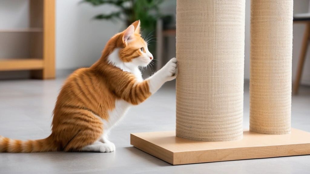 - Когтеточки: Разместите специальные когтеточки (можно купить, а можно и придумать самостоятельно) в любимых для кошки местах, особенно там, где она часто спит или возле облюбованной ей мягкой мебели, которую она часто пытается царапать. Попробуйте разные материалы – например, джут, ковролин или картон.