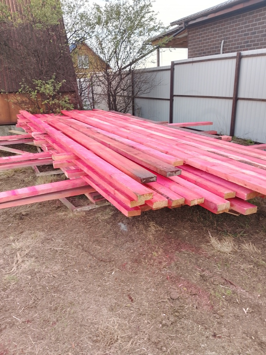 Здравствуйте! Бетон на заборах сохнет, ждет своей очереди, ну а мы на строительство каркасного дома. Материал подсох. можно приступать к монтажу перекрытия. Дом будет шесть на шесть, с досок и начали. Я торцевал, напарник укладывал и сколачивал. Сначала сколотили основание по сваям, оно будет прибуриваться анкерами к буро забивным сваям. Сверху настелили сетку, сетка оцинкованная, ячейка шесть на шесть миллиметров, теперь грызуны в дом со стороны пола точно не проникнут, хотя сосед тут, заехавший на огонек, ваша сетка, говорит, хомячкам на пару секунд, хотя лично я засомневался, ножницами по металлу не режется. В общем весь периметр пробили сеткой, можно уже и лаги настилать. Лаги поставили через расстояние в пятьсот девяносто, хотя я бы предпочел через триста, но бюджет у нас ограниченный, не хотелось бы за него выходить, можно и так. На жесткость конечно влияет, но не так что бы слишком. Весь каркас собираем на вот такие вот гвозди, они ершеные с клеевым слоем, на гвоздях не