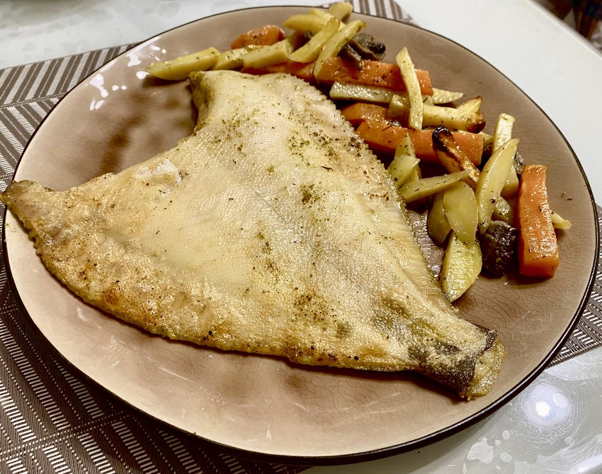 Камбалу промыть, обсушить бумажными полотенцами, натереть специями (солью, перцем, хмели-сунели, паприкой (все специи по вкусу, у меня на три рыбы по пол чайной ложки каждого вида специй)),полить соком лимона. Продвинь застелить пекарской силиконизированной бумагой, выложить на него рыбу и запекать на режиме гриль (или конвекция) при 180 градусов 25 минут. Подавать с любимым гарниром, приятного аппетита!