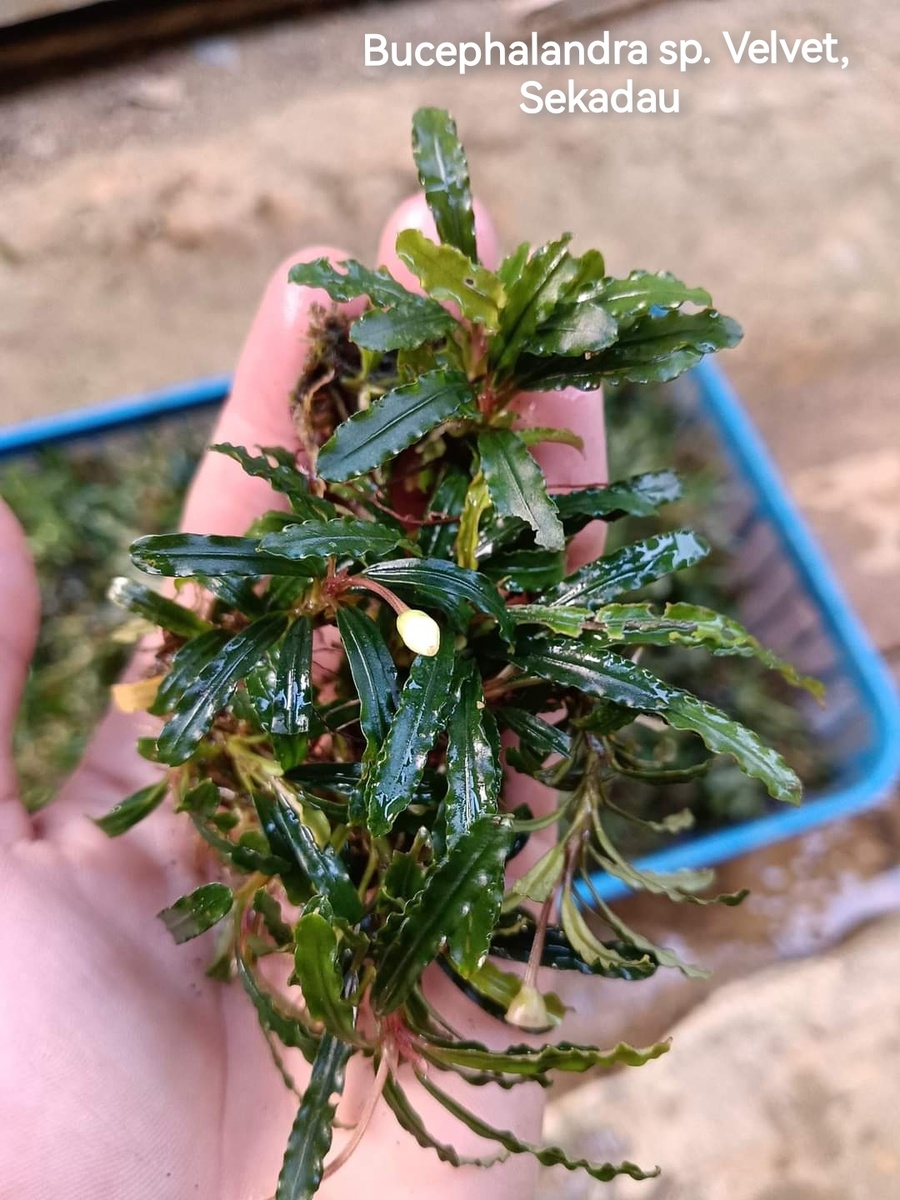 Интересное растение, но очень много загадок для нас остаётся с его определением. После нелегкого общения с растениеводами с острова Борнео, через переводчик, с помощью карты, кое что удалось выяснить. Но для начала следует перечислить под какими названиями можно приобрести в России похожие растения. Сейчас новые поставщики выделяют: Bucephalandra sp. Velvet, Bucephalandra sp. Mini Velvet, Bucephalandra sp. Black Velvet, Так же есть похожие растения: Bucephalandra sp. Crocodile Land, Bucephalandra sp. King Long leaf, Bucephalandra sp. Red sword, Bucephalandra Catherine В начале двухтысячных в Россию поставлялись Velvet под названиями: Bucephalandra sp. Velvet Leaf 1, 2, 3, 4, 5 Bucephalandra sp. Green Velvet Leaf 1, Daerah Sanggau, Bucephalandra sp. Green Velvet Leaf 2, Daerah Sanggau, Bucephalandra sp. Red Green Velvet Daerah Melawi, West Kalimantan, Bucephalandra sp. Green Blue Velvet, Sokan-1. А также Bucephalandra sp. Tricolor, Bucephalandra sp. Dark Narcissus ... И вс
