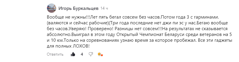 С эпиграфом для этого выпуска подсобил счастливый Игорь Б. - постоянный читатель канала, который откровенно обозначил, кому нужны современные беговые часы: