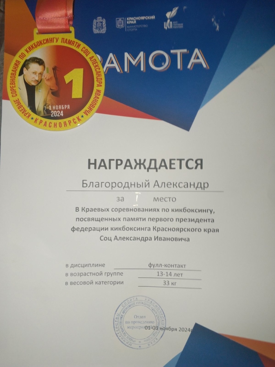 с 1 по 3 ноября в г. Красноярске прошли краевые соревнования по кикбоксингу, посвященные памяти первого президента федерации кикбоксинга Красноярского края Александра Ивановича Соц.