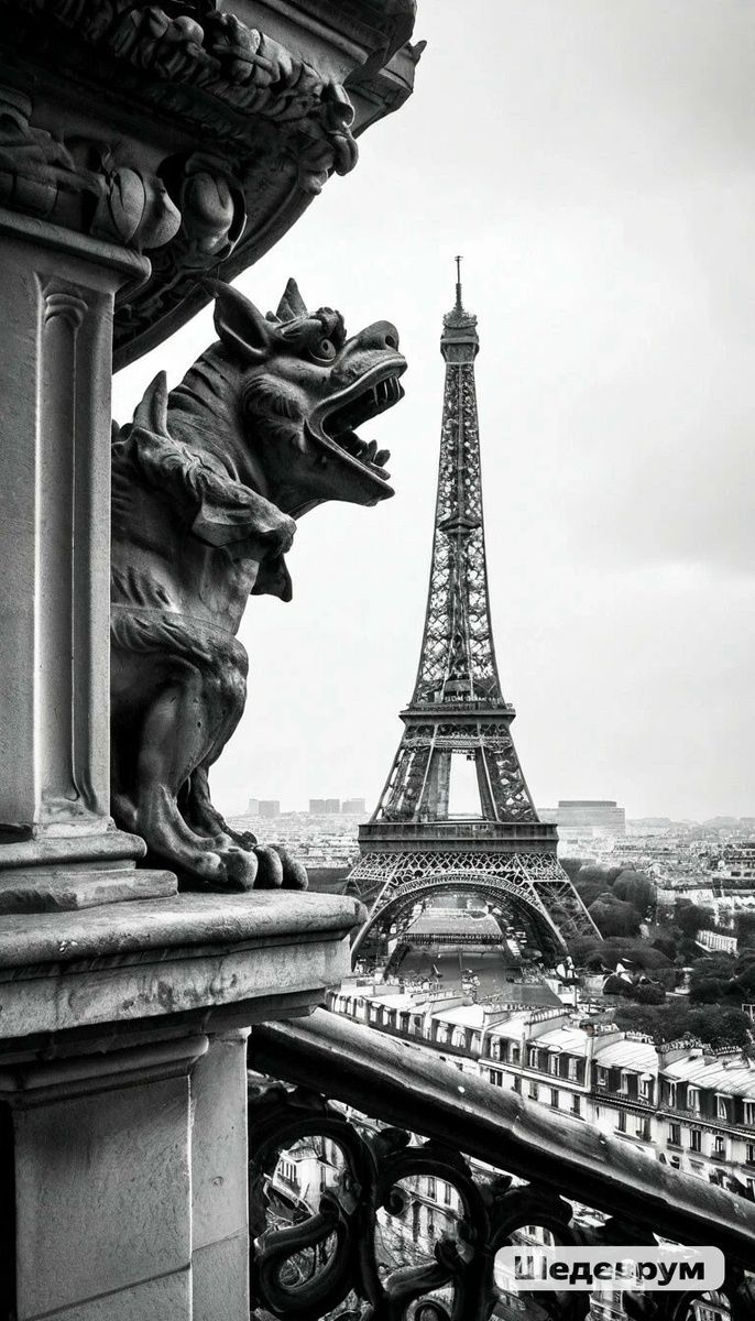 Под словом "горгулья " мы понимаем жуткое существо, с дьявольской мордочкой, крыльями летучей мыши, зубами и когтями. А знаете ли вы, что в самом своем первом смысле изначальном смысле "горгулья" - всего лишь водосток. Название произошло от французского слова gargouiller, что означает булькать, ворчать, бормотать, болтать (ведь вода, стекая по водостоку, издает характерные звуки). По крыше ливневые струи Бегут, стучат. Из пасти каменной гаргульи Льет водопад... Вот так, превратившись из функционального элемента в мистическое существо горгулья будоражит фантазию фотографов, художников и даже... нейрохудожников! В нейросети Шедеврум много фантазийных сюжетов с горгульей в главной роли, вот и мы сегодня добавили свой вклад в эту тему. До новых встреч!