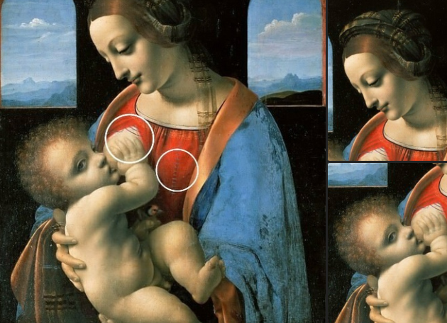 Тайный символизм "Мадонны с младенцем" Леонардо да Винчи: почему на груди Мадонны разорваны стежки?