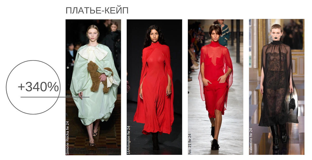 Очень женственная и благородная вещь. Сразу на ум приходят ассоциации с королевскими особами (хотя на самом деле они одеваются не очень актуально, но это тема для отдельной статьи). Модель показала прирост в 340%. Как видите, уже сейчас дизайнеры интерпретируют такие