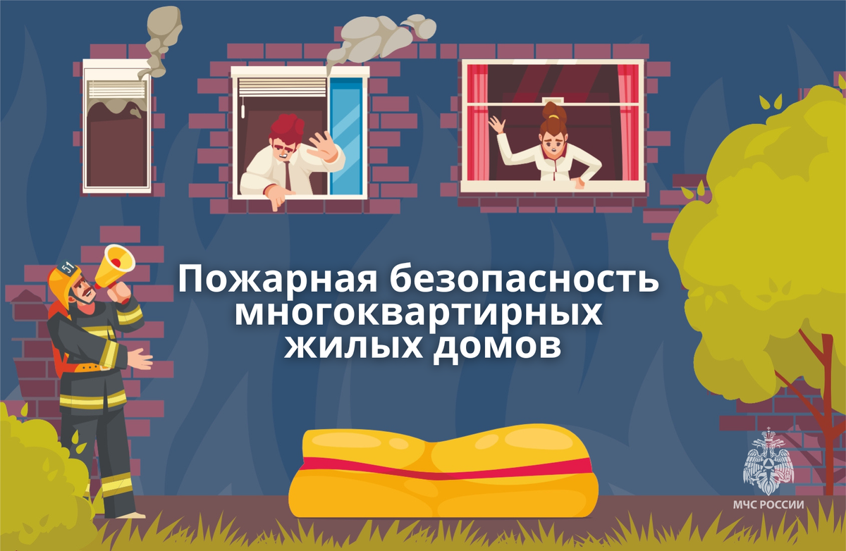 Каждый многоквартирный жилой дом (МКД) имеет систему обеспечения пожарной безопасности, которая включает в себя: - проектные решения (применяемые строительные материалы, количество эвакуационных выходов, этажность и т. д.); - системы противопожарной защиты (автоматическая пожарная сигнализация, система оповещения, дымоудаления, внутреннего противопожарного водопровода); - противопожарный режим — требования пожарной безопасности, которые определяют правила поведения людей, порядок содержания территории, зданий, помещений. Одной из наиболее частых причин пожара в МКД является неисправность электрической проводки и электроприборов. В осенне-зимний период это особенно актуально так как происходит увеличение нагрузки на электрическую сеть из-за использования нагревательных и осветительных электроприборов. В многоквартирных жилых домах запрещается: - размещать и эксплуатировать в лифтовых холлах кладовые и другие подобные помещения, а также хранить горючие материалы; - снимать предусмотренны