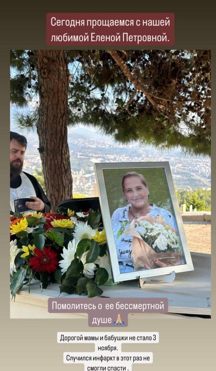 Дарья и Сергей Пынзарь — одна из образцовых пар «Дома-2». Они познакомились на проекте, влюбились друг в друга и с тех пор не расставались. Мать Сергея приняла невестку как родную дочь. У экс-героини телестройки родители умерли рано, поэтому ей была ценна любовь и забота свекрови. При переезде в Турцию супруги забрали Елену Петровну с собой. Вчера Дарья сообщила, что матери мужа не стало. У нее случился инфаркт, медики уже ничего не смогли сделать. Женщине было 67 лет. Она увлекалась кулинарией и старалась как можно больше времени проводить с любимыми внуками: Артемом и Давидом. Публикация Дарьи Пынзарь «Сегодня прощаемся с нашей любимой Еленой Петровной. Помолитесь о ее бессмертной душе. Дорогой мамы и бабушки не стало 3 ноября. Случился инфаркт, в этот раз не смогли спасти. Вспомните добрым словом нашу дорогую Елену. Пусть земля будет пухом», — написала в личном блоге звезда «Дома-2». У Елены Петровны было много планов впереди. Она мечтала открыть собственное производство консервиров