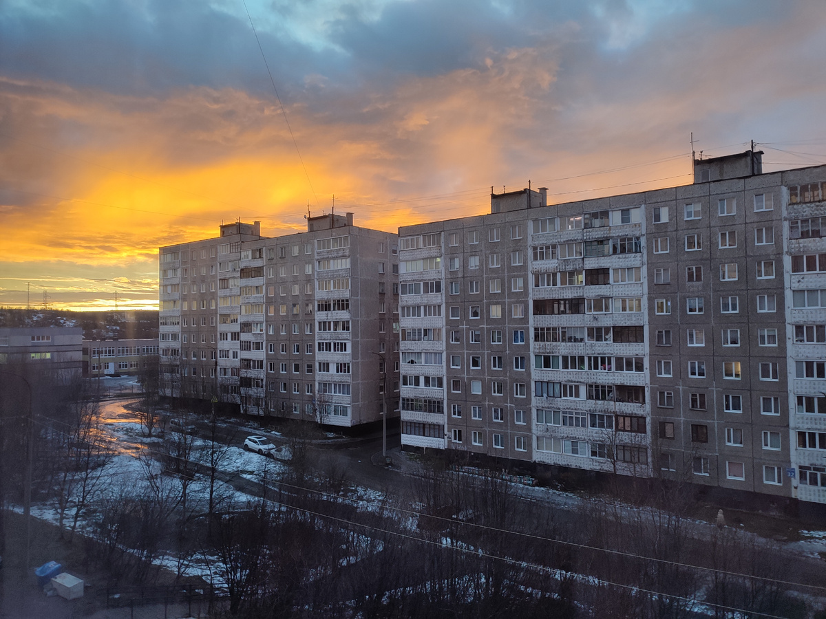 Природные катаклизмы в этом году решили побить рекорды. То снег падал с неба до самого июня, то в ноябре плюс десять. Я возвращалась в Мурманск в 20-х числах июня, было плюс пять градусов. В поезде промерзла и заболела. В конце июня. Это потом уже включили тепло, я бы сказала, жару до самого октября. В июне +5, в ноябре +10, это так по Мурмански)) Закат сегодня был волшебный. Давно таких красок на небе не видела. Закат снимала с 15:10 до 15:30. Если бы не посмотрела время съёмки, не поверила бы сама, что так рано. Курьер утром привёз заказ продуктов. Хорошо, что заработал лифт, не представляю, как бы дяденька дотащил это всё на себе. Ценность этого мероприятия в том, что организовал его сын. Сам. И на свой вкус. И это то внимание, от которого ком в горле и слезы благодарности. И я, конечно, сказала об этом. Потому, что это важно. Важно уметь давать и принимать, благодарить и принимать благодарность. Мурзилка конечно с ревизией пришла. Даже упаковалась в освободившийся пакет. Д