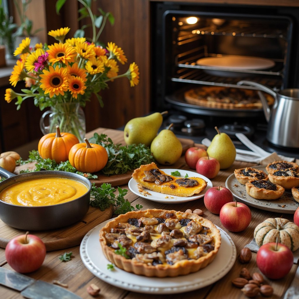 Осень — это время года, когда природа радует нас обилием свежих и вкусных продуктов. Это идеальный момент, чтобы попробовать новые рецепты и насладиться сезонными блюдами. Вот несколько идей, которые помогут вам разнообразить ваше меню и насладиться осенними вкусами. #### 1. Крем-суп из тыквы Тыква — это истинная королева осени, и крем-суп из тыквы — классическое блюдо, которое согреет вас в прохладный день. Для приготовления вам понадобится тыква, картофель, морковь, лук, сливки и специи. Все овощи нарезаются и тушатся, затем измельчаются в блендере до состояния пюре. Добавьте сливки и специи по вкусу, и ваш суп готов к подаче. #### 2. Запеченные яблоки с орехами и медом Запеченные яблоки — это ароматный и простой десерт, который подарит вам ощущение уюта. Выберите крупные сладкие яблоки, удалите сердцевину и наполните смесью из рубленых орехов, меда и корицы. Запекайте в духовке до мягкости и подавайте с шариком ванильного мороженого. #### 3. Грибной пирог Осень — это также сезон гри