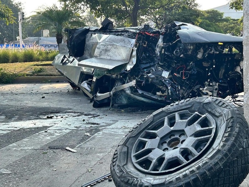 После аварии Tesla Cybertruck превратился в груду металла. Но пассажиры не получили серьезных травм