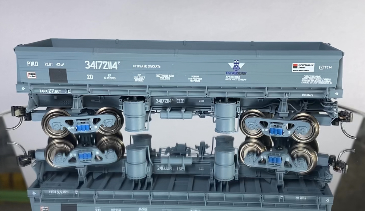 Модель современного вагона-самосвала серии 32-6982, построенная из набора для самостоятельной сборки производства Дмитрия Агапкина. Модель представляет собой вариант тестовой сборки новинки, которая до этого не была представлена широкой аудитории и существует поэтому пока в единственном экземпляре. Обзор этого набора был опубликован на нашем канале недавно, и предыдущая публикация завершалась информацией о том, что модель была полностью собрана и подготовлена к покраске. В реальной жизни вагоны данной серии окрашиваются полностью в серый цвет. Так как вагоны практически новые, в эксплуатации находятся недавно, он не несут на себе обильных следов эксплуатации. Впрочем и модель строилась в полочном варианте исполнения, и пачкать ее не планировалось с самого начала. Тем не менее, хотя вагоны на фотографиях запечатлены в основном свежие и чистые, с определением цвета прототипа пришлось повозиться: на разных фотографиях один и тот же серый цвет выглядел абсолютно иначе. Сказываются разли