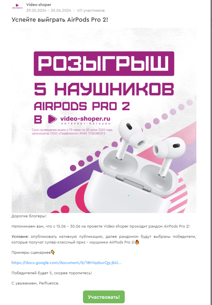 Один из значимых бонусов — регулярные конкурсы и челленджи, организуемые Perfluence совместно с брендами. Участие в таких мероприятиях позволяет блогерам не только заработать дополнительные деньги, но и получить ценные призы, такие как гаджеты, путевки или скидки на продукцию брендов. Конкурсы и челленджи часто сопровождаются условиями, стимулирующими создание качественного и оригинального контента, что помогает блогерам привлекать новую аудиторию и повышать вовлеченность текущих подписчиков.