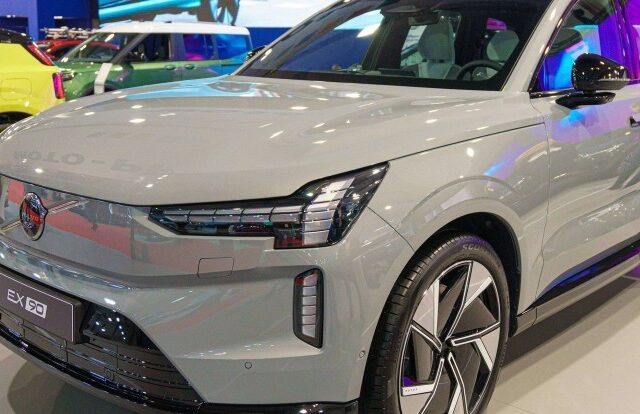 Volvo EX90 — большой 5-дверный внедорожник, вмещающий семь человек. Его длина 5 метров, ширина, высота и вес без нагрузки 2,8 тонны. Он также имеет длинную колесную базу 2,985 мм.