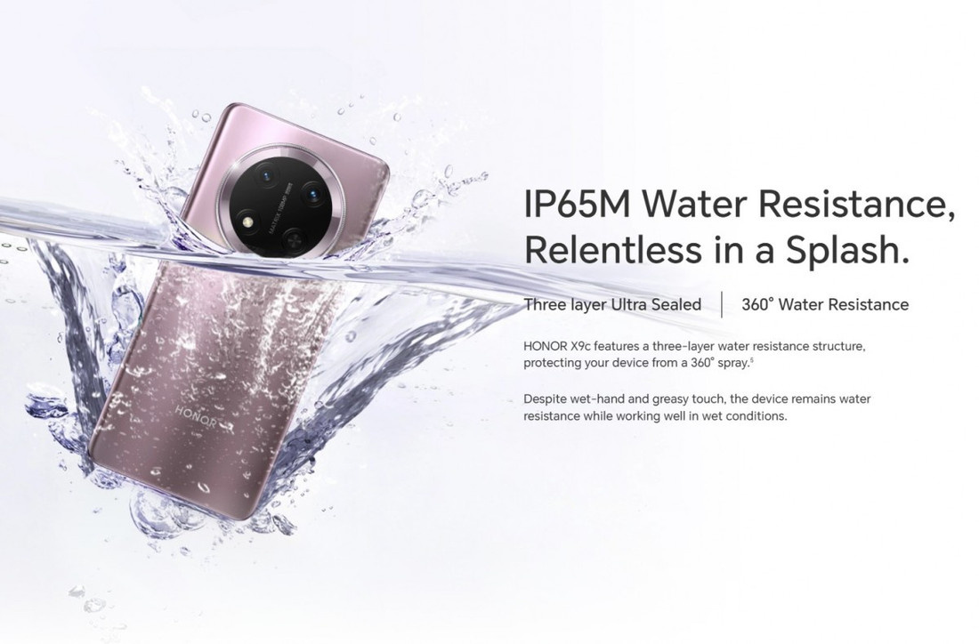 Новый смартфон Honor X9c сама компания позиционирует как наиболее прочный среди своих гаджетов. Кроме того, девайс получил батарею повышенной емкости, пишет GSMArena. X9c защищен по стандарту IP65M (M — всесторонняя защита от струй воды), а также, если верить бренду, выдерживает падения с высоты до двух метров и способен работать при температуре (окружающей его среды) от –30 до 55 градусов (по Цельсию). Емкость аккумулятора составляет 6600 мАч, причем проводная зарядка теперь — 66-ваттная. Чипом выступает Snapdragon 6 Gen 1, оперативной памяти — 8/12 ГБ. Хранилища бывает (на тех рынках, где телефон уже представлен) 256/512 ГБ. ОС — Android 14, оболочка — MagicOS 8.0. Экран — на 6,78 дюйма, c OLED-матрицей и разрешением FHD+. Основная камера включает модули на 108 Мп и 5 Мп («ширик»). Селфи-модуль — 16 Мп. Цена версии на 12/512 ГБ в Малайзии составляет $345, модель с 8 ГБ оперативки ценником пока не обзавелась. Есть о чем рассказать? Пишите в наш телеграм-бот. Это анонимно и быстро