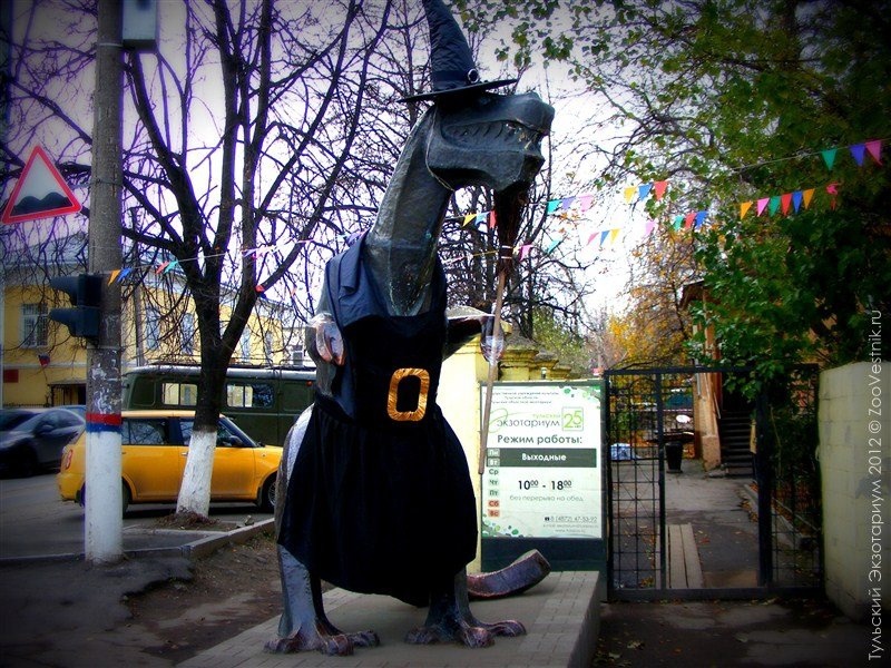 - Создать символ экзотариума мне поручили в 89-м году. Долго думать не пришлось, ведь главная рептилия, которую все знают - это динозавр. Чтобы скульптура не пугала малышей, ее решено было сделать в окружении детишек-динозавриков. Но… как всегда, помешали проблемы с финансированием. Причем денег не хватило даже на надпись «Тульский экзотариум», которая должна была украшать пузо животного. Выливал «тещу» я вручную из бетона