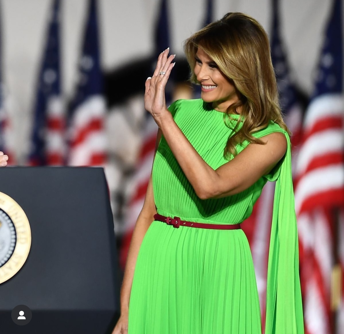 Приветствую Вас, стильные леди! Женщина, чей стиль пленяет, ее острый ум и умение говорить образами без слов восхищает, ее выдержка, самообладание и достоинство подкупает. За ней и ее стилем наблюдает весь мир и это Мелания Трамп. Мелания Трамп (анг. Melania Trump; в девичестве — Кнавс, род. 26.04.1970, в Словении. Является дизайнером ювелирных украшений и часов, фотомодель и супруга 45-президента США Д.Трампа. Пока мужчины интересующиеся политикой, делают ставки и прогнозы о том кто одержит победу на выборах в США, женщины всего мира по утверждению зарубежных СМИ с надеждой ждут возвращения Мелании Трамп на место первой леди. Я писала об этой фантастической женщине, можно почитать ТУТ⤵️ 1 2 3 4 5 Ее выходы на предвыборной компании были безупречными, целостными и собранными. Когда необходимо было привлечь внимание она выбирала красный, цвет лидерства и власти. А когда была необходимость уйти в тень, то бывшая первая леди выбирала элегантные закрытые образы в спокойных тонах. Как Вам