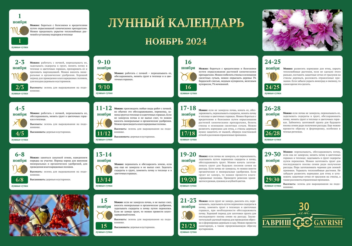 Лунный календарь садовода и огородника на ноябрь 2024 года