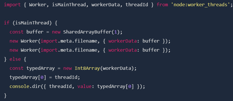 В этом примере создаются два потока, которые одновременно пытаются записать свое значение в первый элемент typedArray. Ожидается, что каждый поток запишет свое значение threadId в общий массив. Однако при выполнении этого кода могут возникнуть неожиданные результаты – оба потока будут показывать одно и то же значение, даже если у них разные threadId: