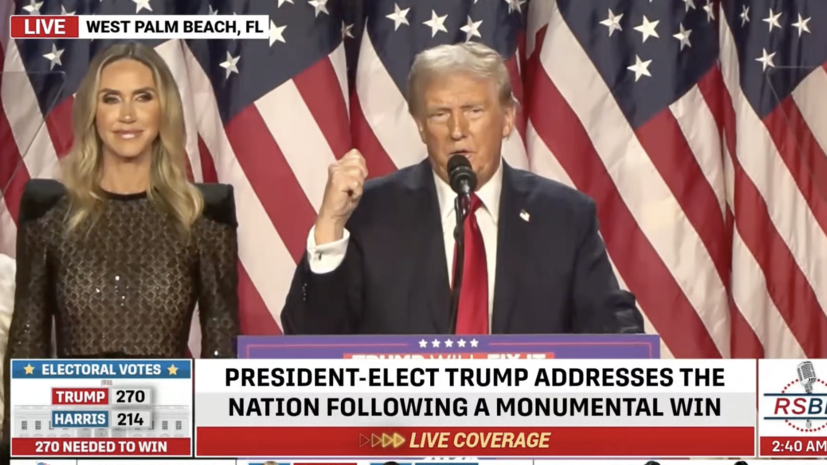 Кандидат в президенты США от Республиканской партии Дональд Трамп выступил перед своими сторонниками. Согласно последним данным, он лидирует в голосовании за пост главы Белого дома, опережая демократку Камалу Харрис. RT вёл прямую трансляцию.