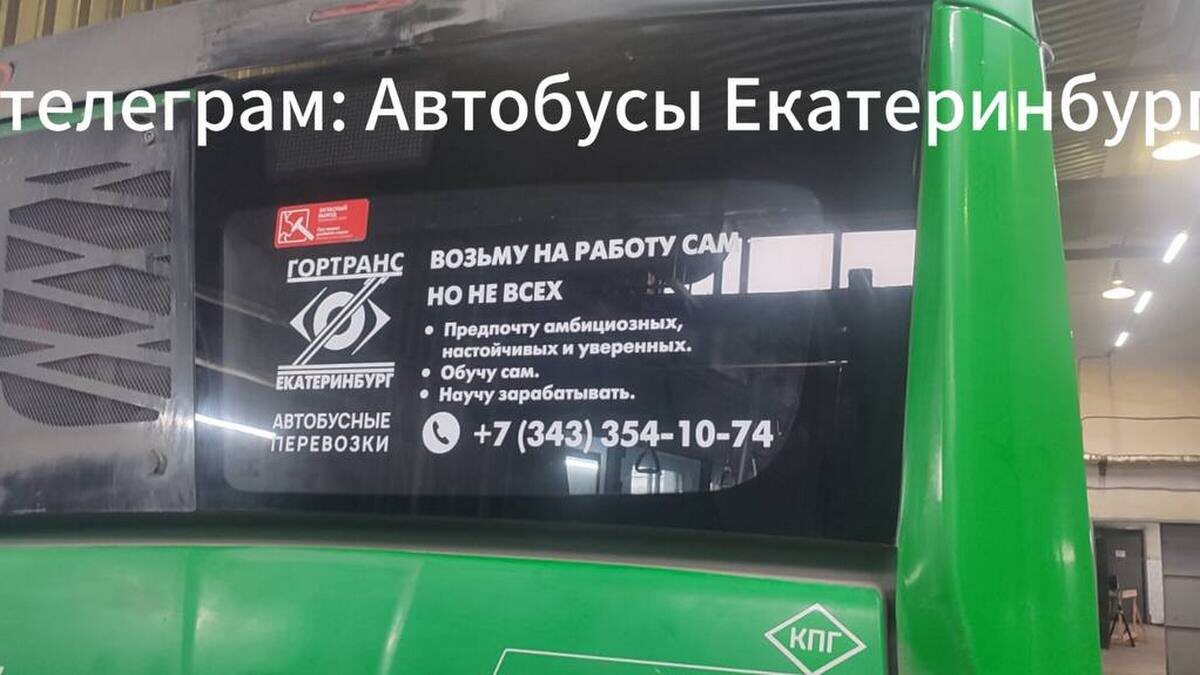 Екатеринбург, 6 ноября — ИА Время Пресс. МУП «Гортранс» Екатеринбурга креативно ищет водителей. На автобусах разместили объявления о поиске сотрудников, но сделали это с юмором. На стеклах автобусов появились необычные надписи. Таким образом руководство хочет решить вопрос с нехваткой водителей. Все объявления нанесены на заднее стекло транспортных средств, поэтому обзору пассажиров не мешают. «Одинокий и симпатичный автобус мечтает познакомиться с девушкой, владеющей категорией «Д». Позвони мне, я жду!»;«Мечтаешь на всех смотреть свысока, плавно покачиваясь в удобном кресле?»;«Хотите чтобы вас ждали в любую погоду?»;«Срочно требуется командир корабля на регулярные рейсы», — гласят надписи. Фото: Telegram-канал «Автобусы Екатеринбурга» Фото: Telegram-канал «Автобусы Екатеринбурга» Проблема с нехваткой водителей в Екатеринбурге стоит очень остро. Из-за этого в часы пик на остановках скапливаются десятки человек, а из одного района в другой уехать практически нереально. Фото: Telegram-ка