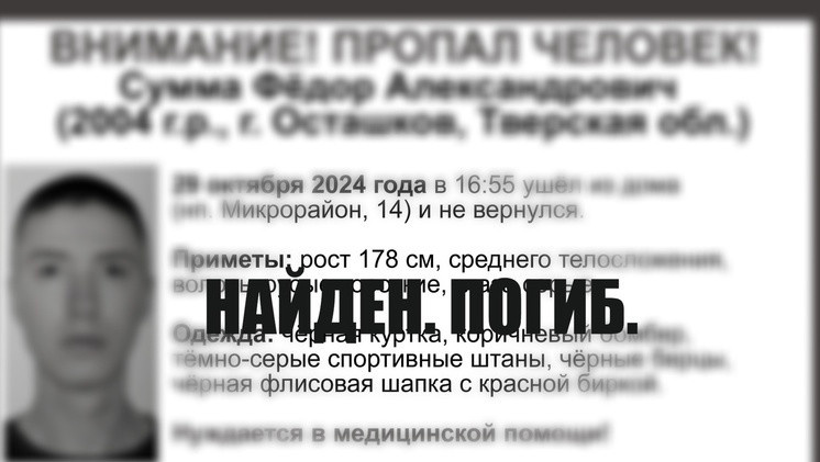 Пропавшего в Тверской области молодого человека нашли мертвым