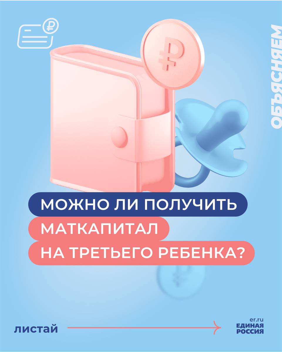 Маткапитал можно получить и на третьего ребенка. Но при соблюдении некоторых условий. Все подробности об этом собрали в наших карточках.