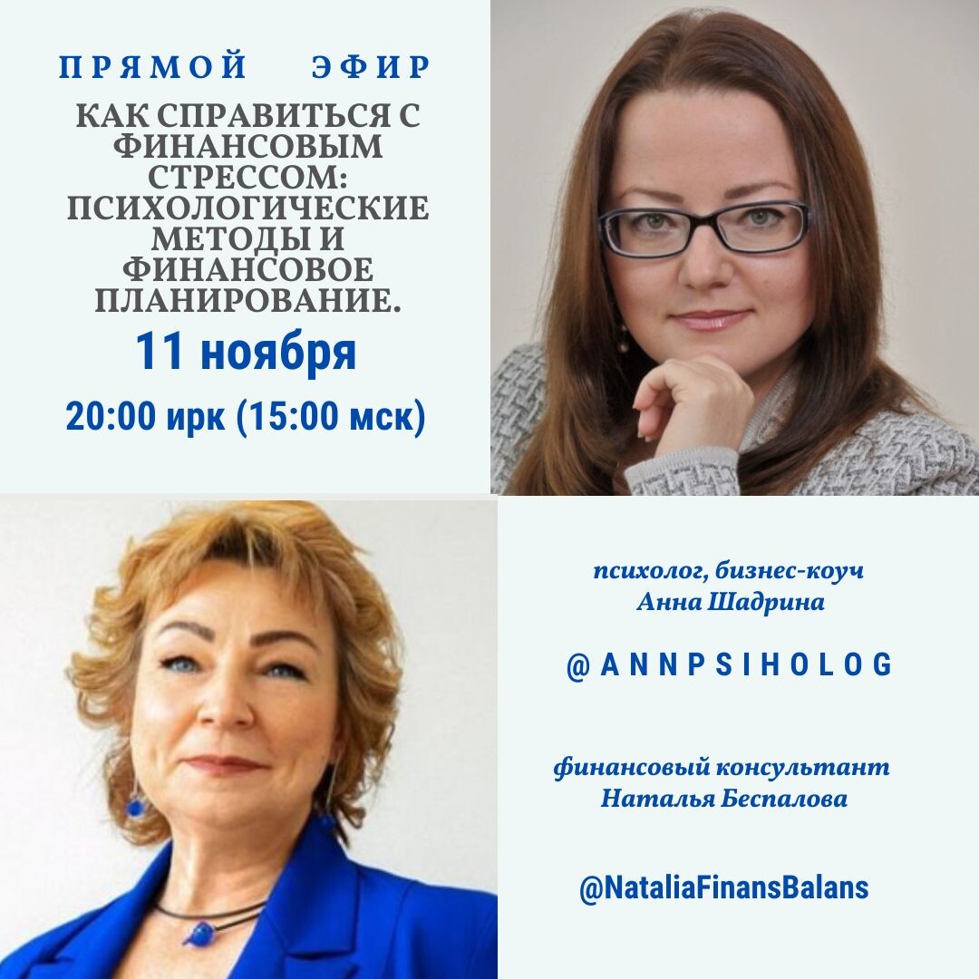 Спикеры: Профессиональный психолог Анна Шадрина и опытный финансовый консультант Наталья Беспалова— двое экспертов, которые помогут вам взглянуть на проблемы с новой стороны.