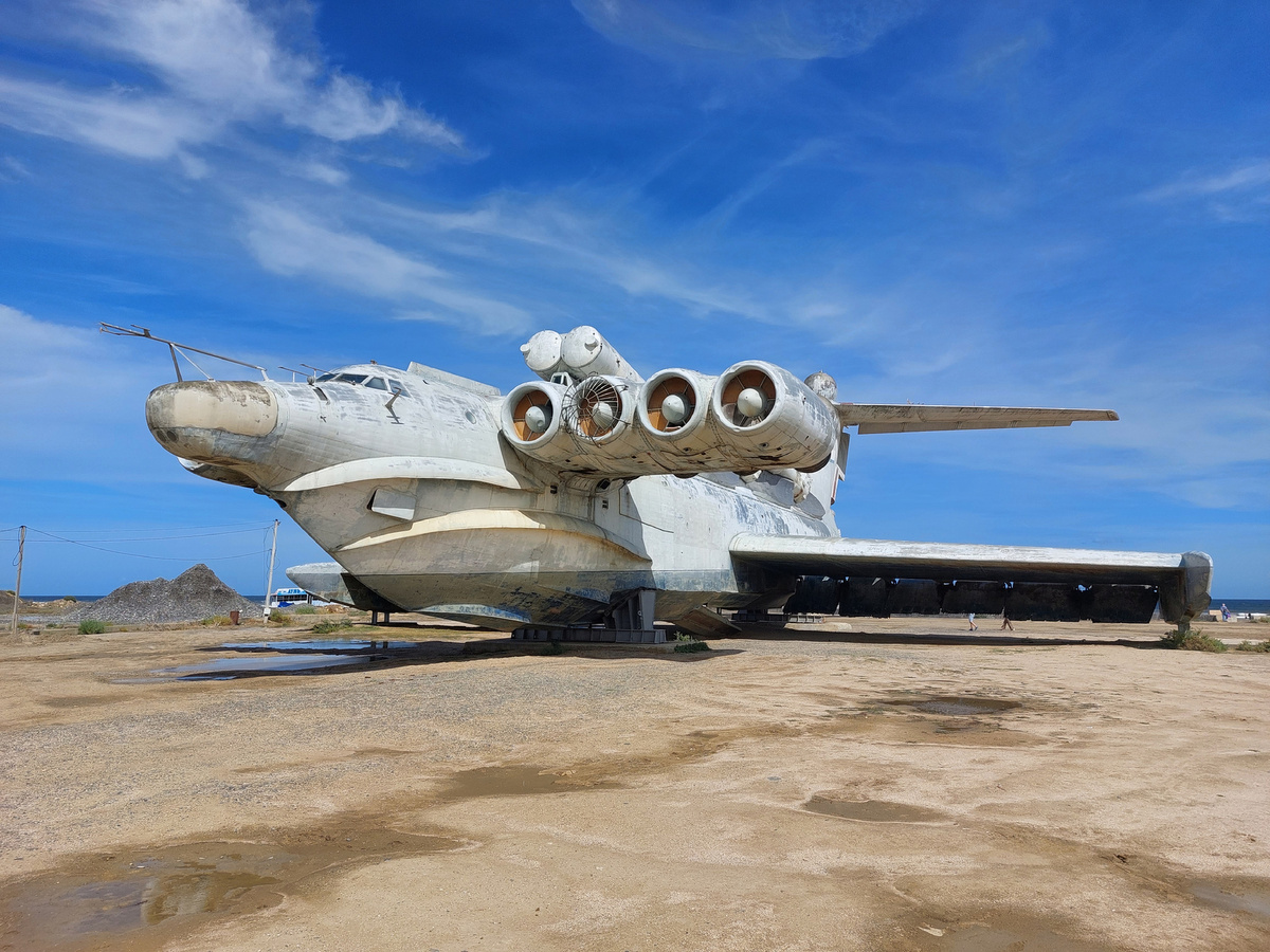Когда-то, впервые увидев фото этого чуда техники, восхитился и загорелся желанием увидеть его "вживую". Жаль, конечно, что именно "живым" увидеть его уже не придётся, а как бы хотелось посмотреть на его полёт... Было не понятно, как его повидать, ввиду географического положения. На пенсию экраноплан был отправлен куда-то к чёрту на кулички, на пустынный берег Каспийского моря, когда-то бывшего его стихией. Заехать в рамках велопохода? Что-то не назревал туда велопоход... Но вдруг у меня образовалось непредвиденное свободное время, и, оказалось, есть прямые самолётные рейсы из Курумоча в Махачкалу. А там уже электричка, такси, и - здравствуй, Лунь! Рад тебя видеть! Ну а дочке главное - чтобы было где побегать.