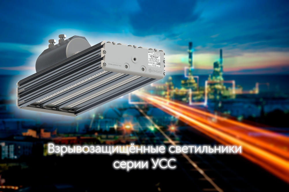 УСС - это серия светодиодных светильников, предназначенных для освещения объектов нефтегазовой и атомной промышленности 2-й зоны взрывоопасности. Мощность от 9 до 260 Вт. В нашем освещении для взрывоопасных зон применяются самые современные технологии в области защиты от разнообразных горючих смесей, материалов и жидкостей. Светильники обладают высокой устойчивостью к вибрациям и механическим воздействиям.