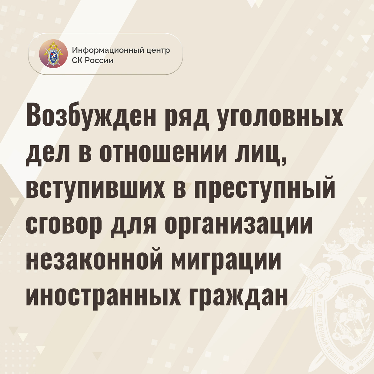 Возбужден ряд уголовных дел в отношении лиц, вступивших в преступный сговор для организации незаконной миграции иностранных граждан