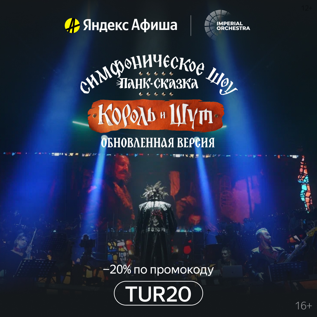А за билетами, разбежавшись, прыгайте на «Яндекс Афишу». Промокод TUR20 даёт скидку 20%. Клик по ссылке: https://vk.cc/cDCngb