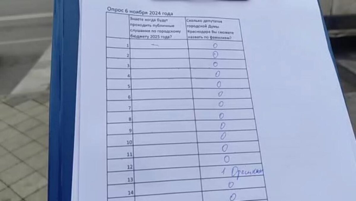 Краснодарский активист Виталий Черкасов провёл перед мэрией города опрос жителей. Его интересовало, знают ли горожане фамилии депутатов главного представительного органа кубанской столицы – Городской думы. Оказалось, не знают. От слова вообще. О результатах своего опроса общественник рассказал 6 ноября в своём телеграм-канале «Азбука горожанина». СМОТРЕТЬ ВИДЕО Известный краснодарский общественник Виталий Черкасов по дороге в мэрию, где сегодня проходили публичные слушания по бюджету Краснодара на 2025 год, провёл опрос с целью узнать, как горожане знают своих депутатов. Предполагалось, что должны знать, ведь народные избранники, принимая решения, проявляя всяческие инициативы, в том числе по принятию нашумевшего «антинародного» Генплана, вершат не только судьбу города, но и его жителей. Активист обратился к 30 прохожим с одной просьбой – назвать известного им депутата. Какого же было изумление Черкасова, когда стало понятно, что горожане даже не в курсе, кого они выбирали, возможно, д